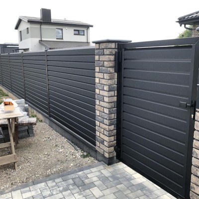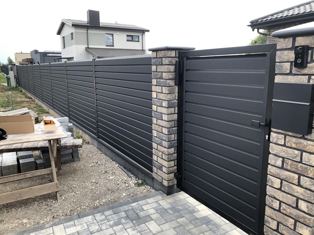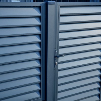 Our affordable metal fencing system enables the installation of slats in gates. This allows them to fit into most gate span dimensions. The spacing between the slats can be set according to individual preferences.